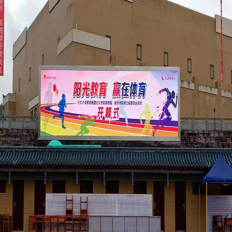 贵州兴义市阳光书院校户外P4高清大屏,调试完毕,校运会已投入使用!彩色艳丽,亮度清晰,效果不错!天和光电又做到一周内,安全可靠、快速准确打造的新案例,为客户在计划时间内的使用带来了便利,兴义LED屏幕
